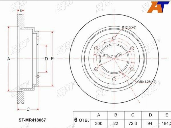 .SAT Диск тормозной задний для Mitsubishi Pajero 99-20 / Montero 06- информация: