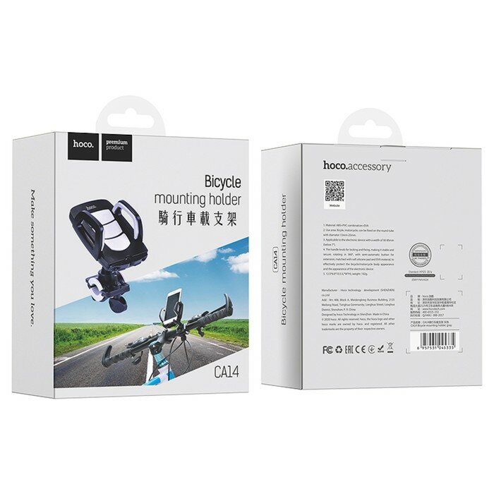 Hoco Велосипедный держатель на руль Hoco CA14, для телефона до 7", захват 50-85 мм, черно-серый информация: