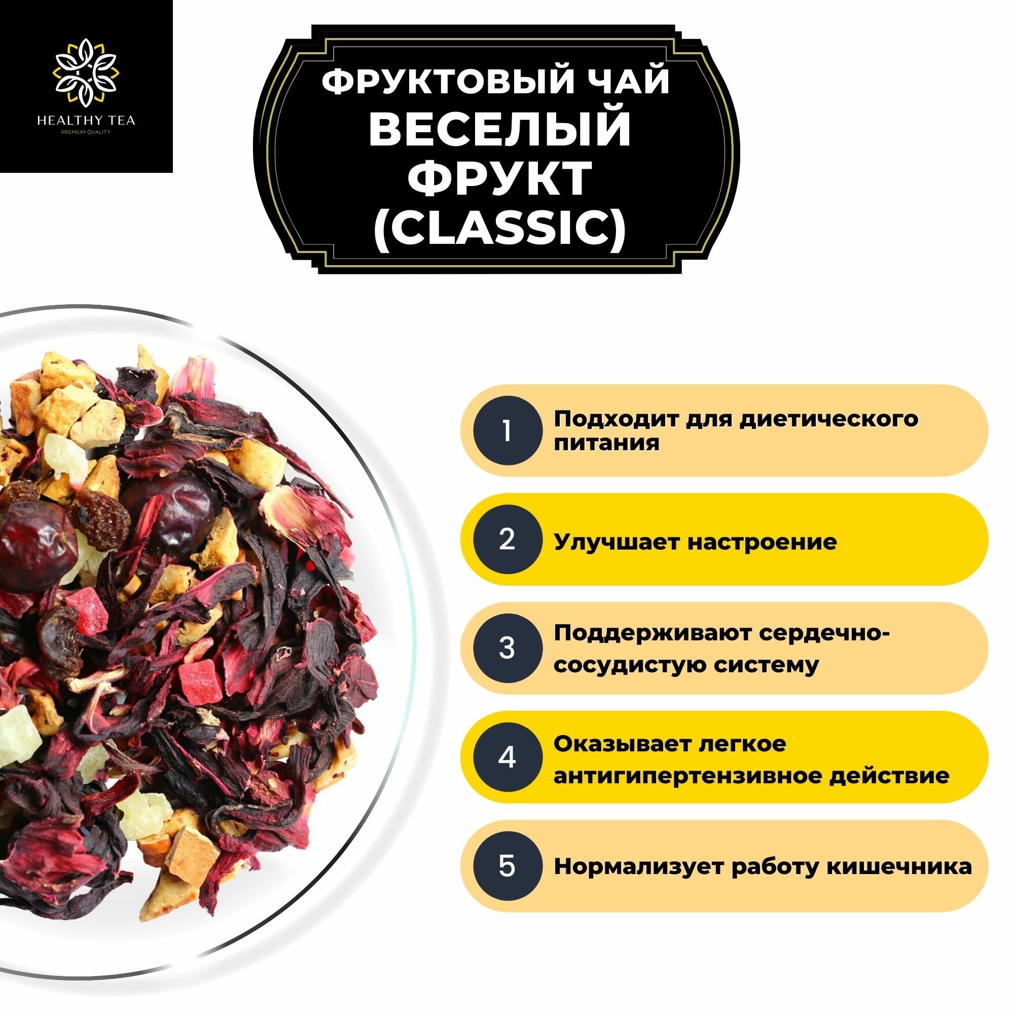 Фруктовый чай с ананасом, шиповником и каркадэ Веселый Фрукт (Classic) Полезный чай / HEALTHY TEA, 150 г информация: