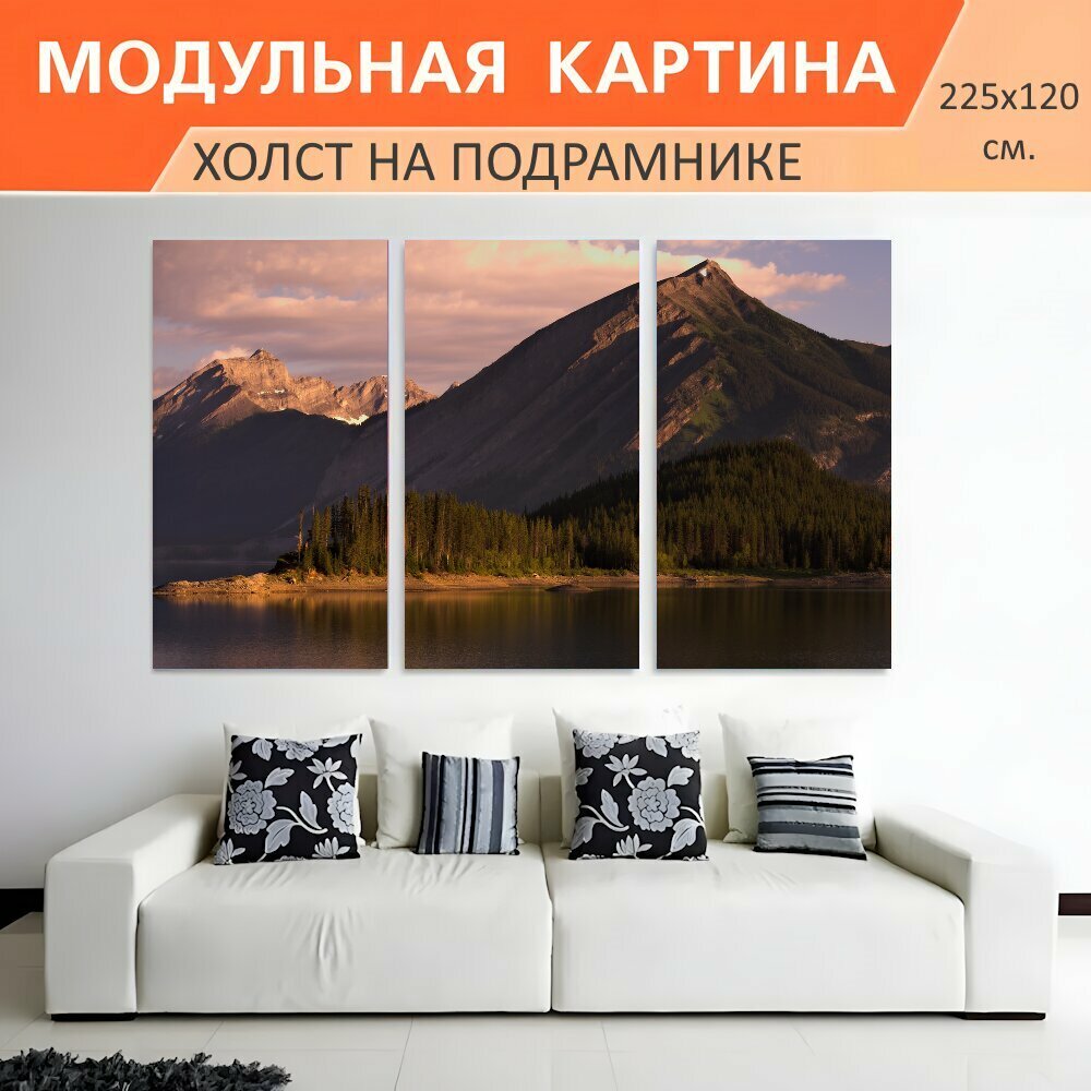 10 цен на Модульная картина на холсте "Горы, канада, скалистые горы" триптих на подрамнике 225х120 см. для интерьера