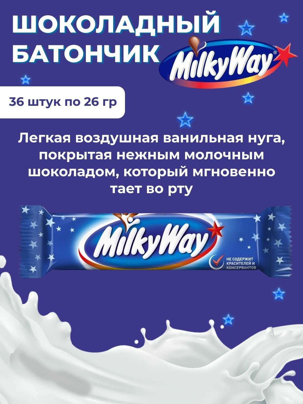 10 цен на Шоколадные батончики упаковка Милки Вей 36 шт по 26 гр