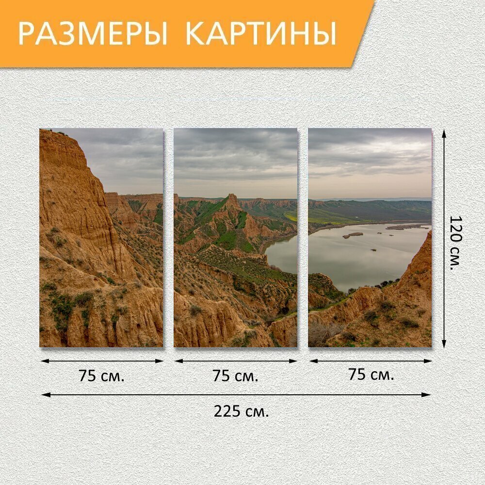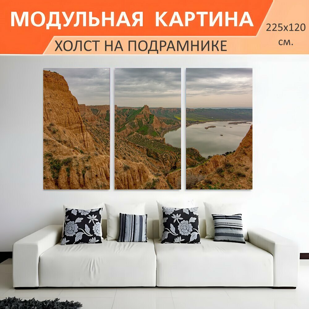 10 цен на Модульная картина на холсте "Каньон, толедо, пейзаж" триптих на подрамнике 225х120 см. для интерьера