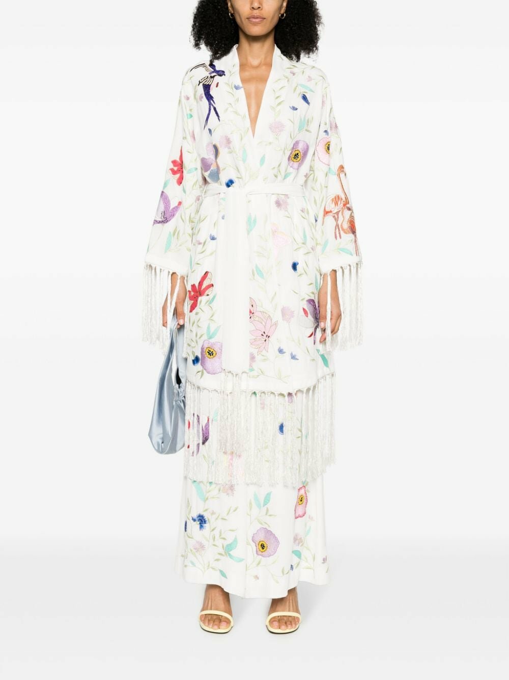 Forte Forte - накидка с бахромой с цветочным принтом - Женский - I - Серебристый информация:
