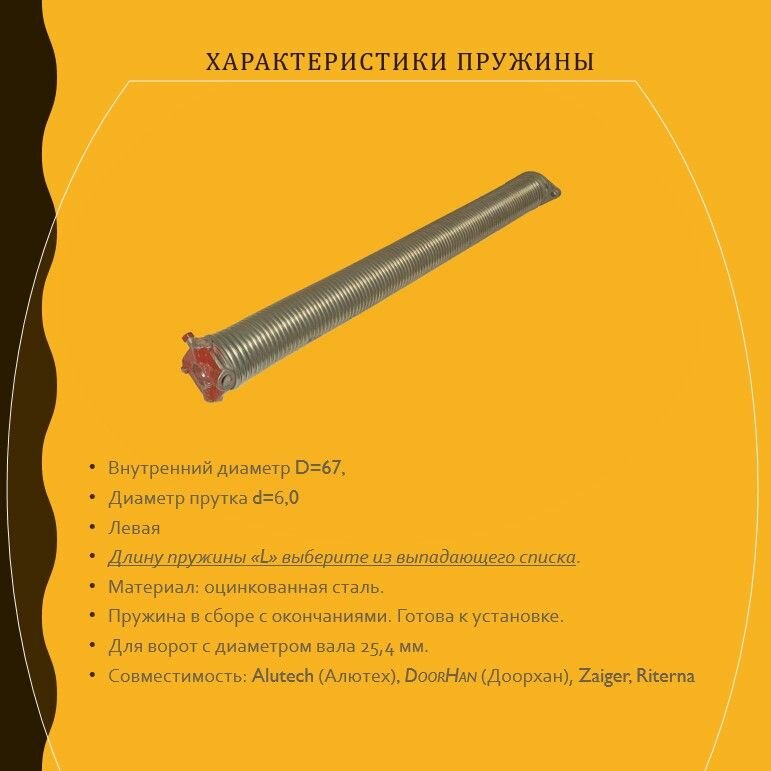 Торсионная пружина для секционных ворот 67*6.0*700 левая информация: