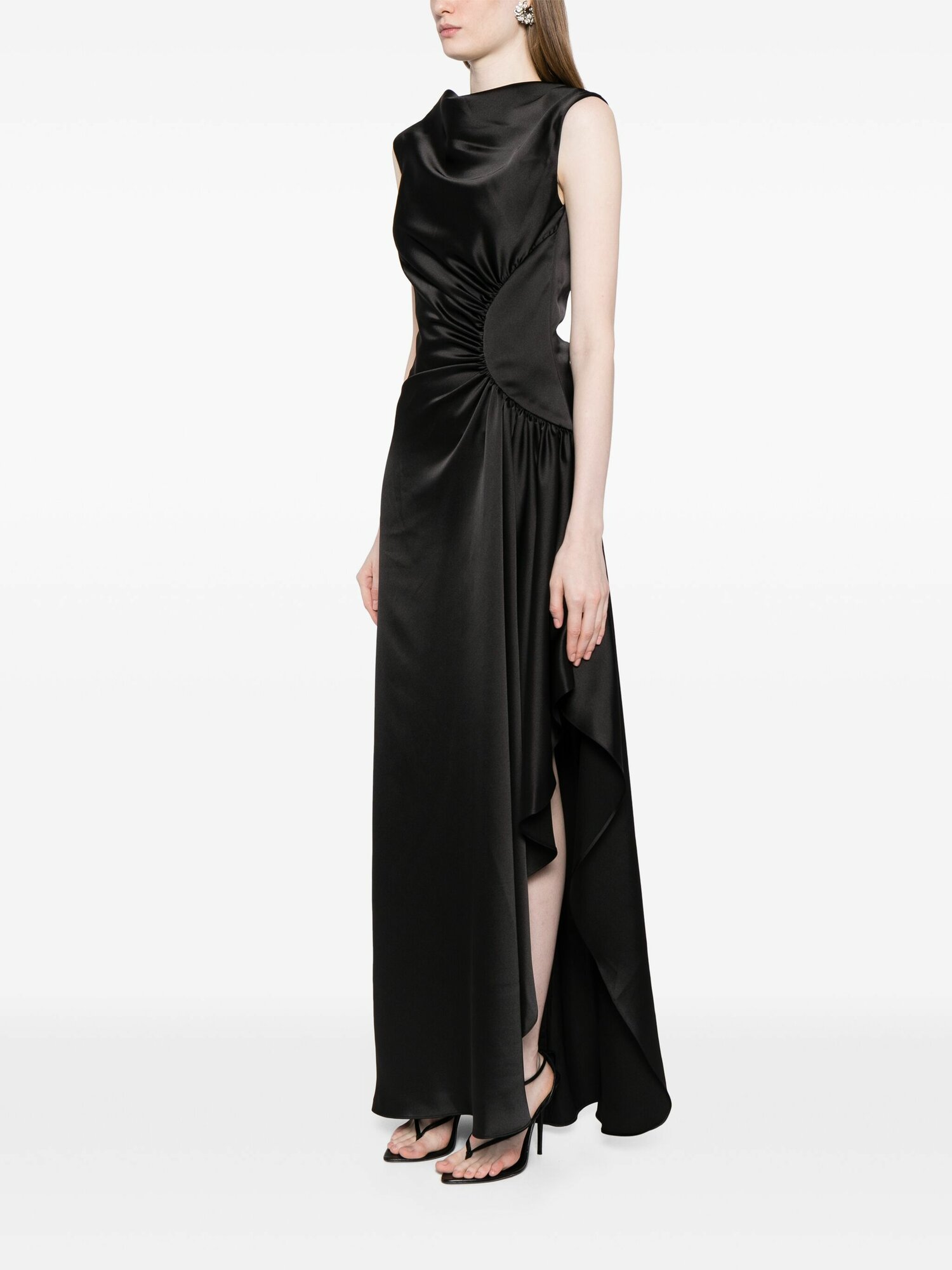 10 цен на Amsale - асимметричное атласное платье с драпировкой - Женский - 4 - Черный