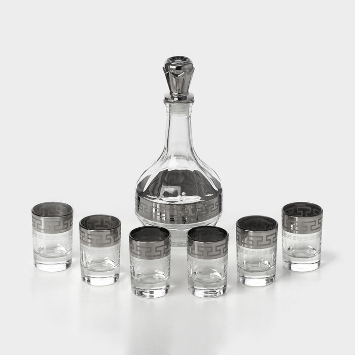 10 цен на Набор стеклянный питьевой «Неро», 7 предметов: графин 500 мл, стопки 50 мл, цвет серебро