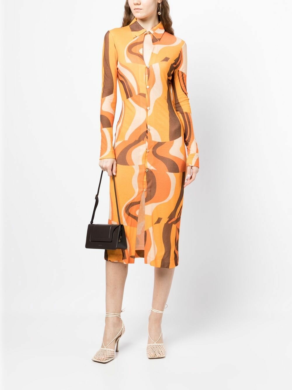 10 цен на Rejina Pyo - Платье-рубашка с абстрактным узором - Женский - 6 - Оранжевый