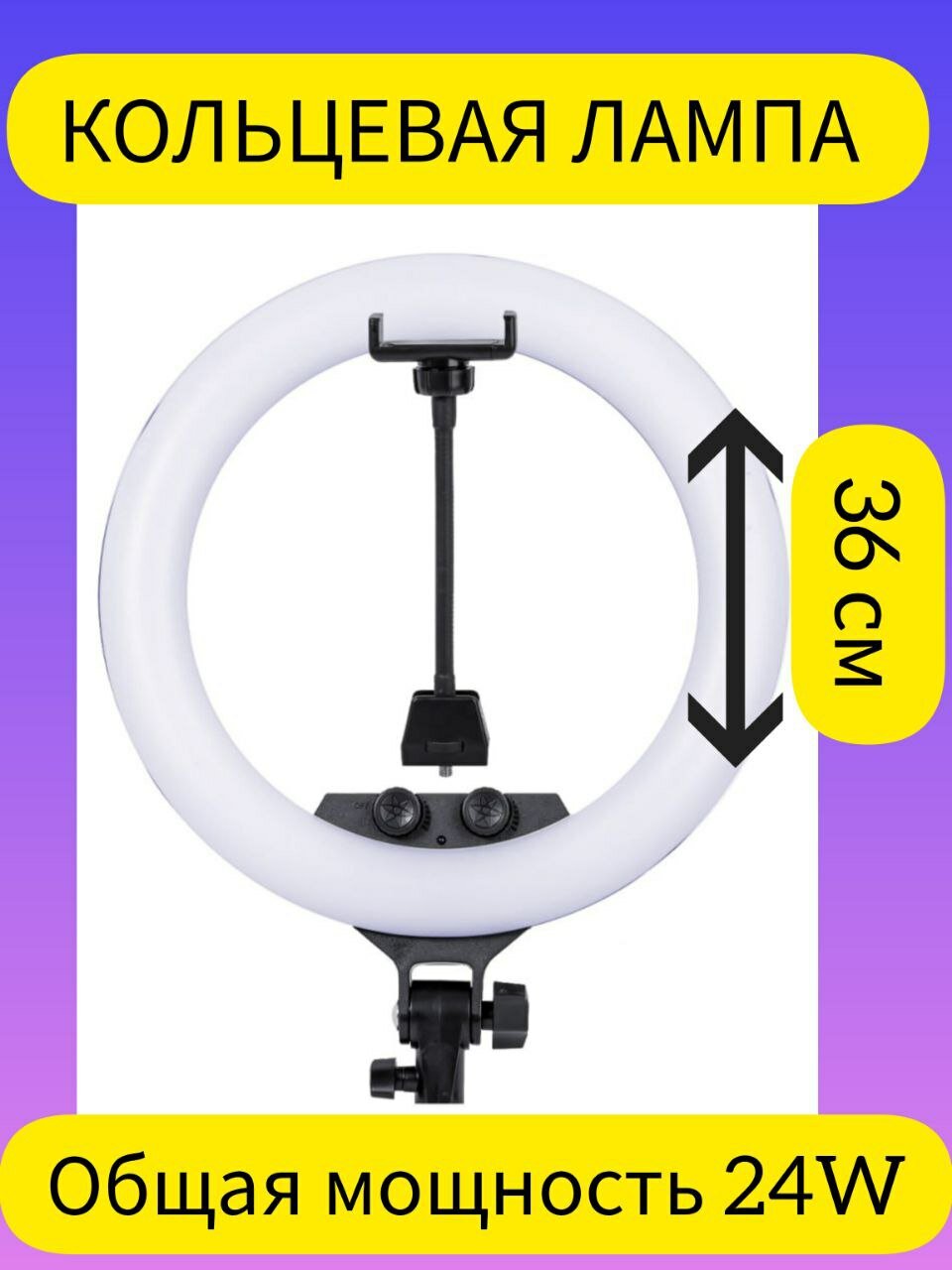 Кольцевая лампа 36 см 24W информация: