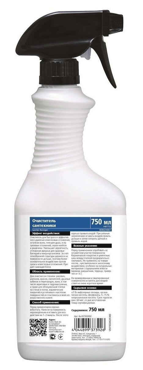 Очиститель для сантехники Pufas Sanitar Reiniger 750мл