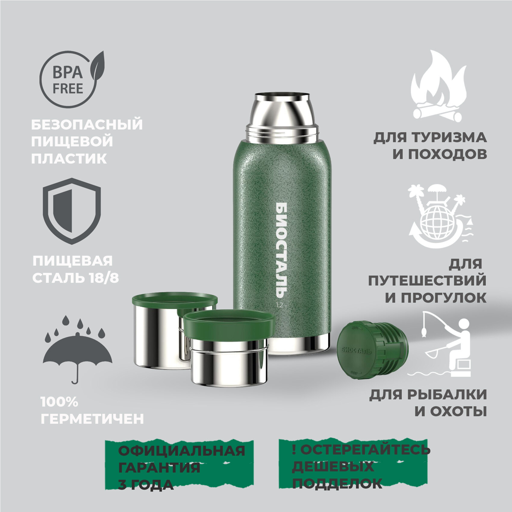 Отзывы на Термос Охота Вакуумный, две чашки Биосталь/Biostal (1.2),NBA-1200G