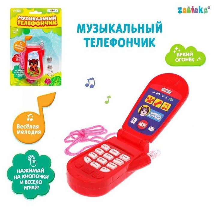 Отзывы на Музыкальный телефон «Домашние питомцы», русская озвучка, световые эффекты, работает от батареек, микс