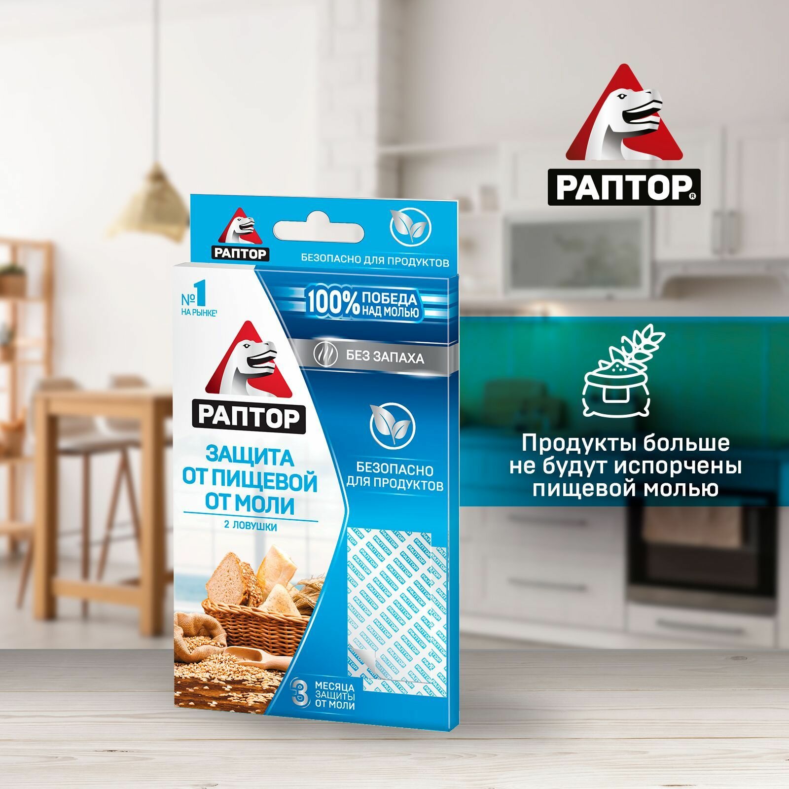 Защита от пищевой моли, раптор, безопасно для продуктов, 3 месяца защиты, 2 ловушки
