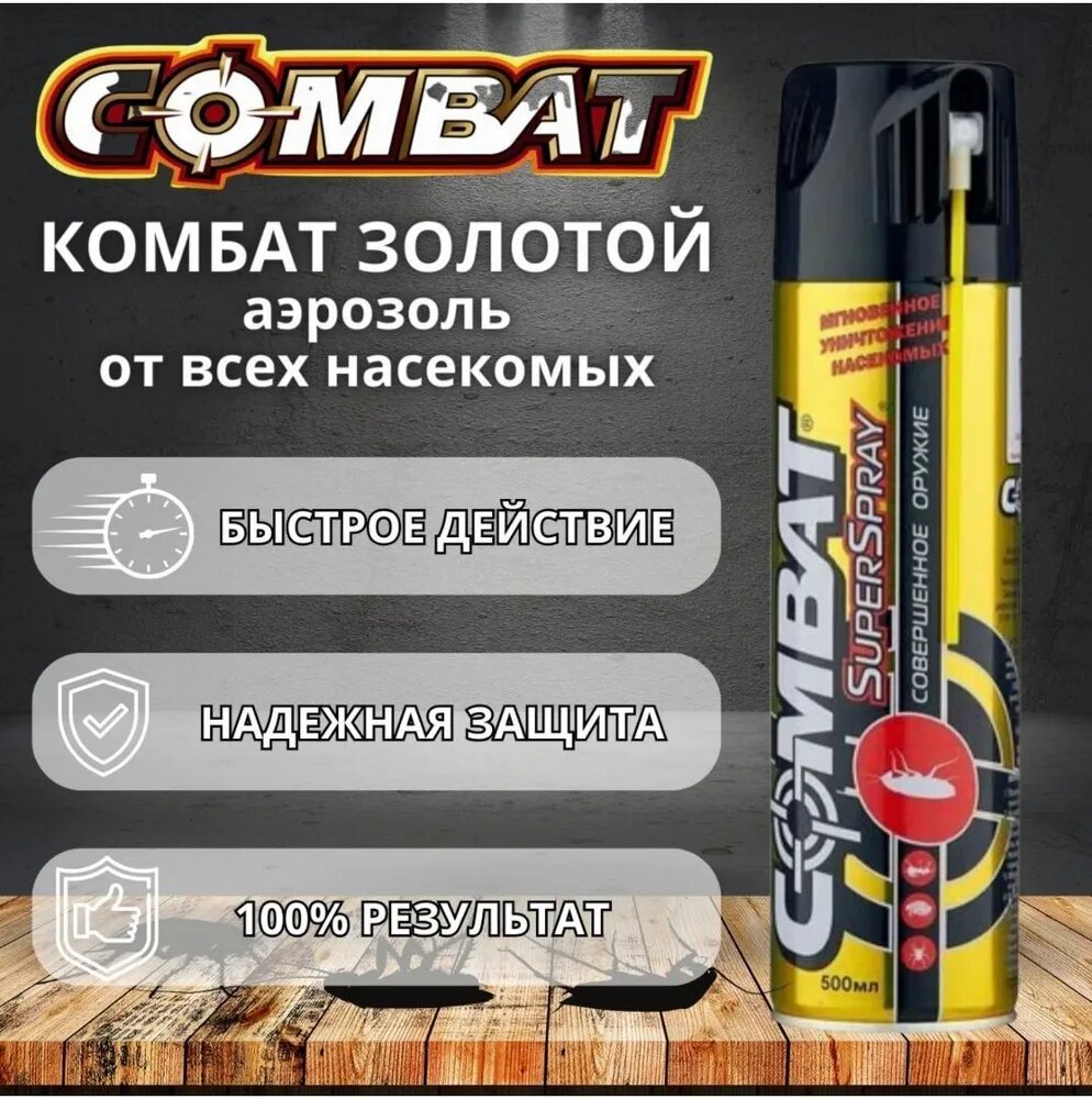 Аэрозоль Combat Super Spray (золотой) от всех насекомых, 500 мл