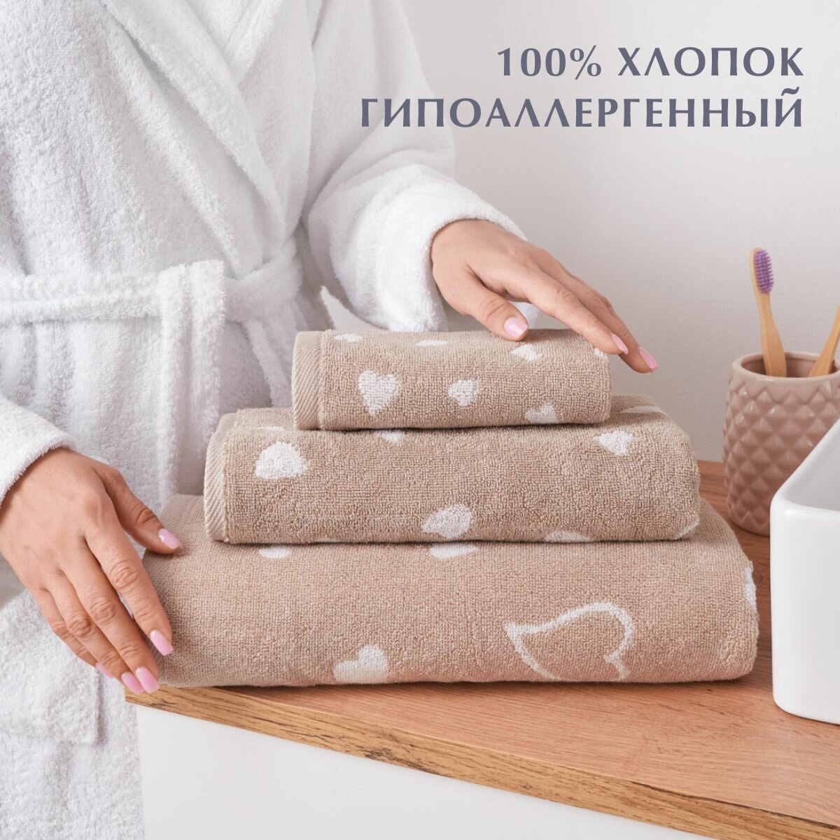 Полотенце махровое, Guten Morgen 1 шт. 70х130, Кэт Лав, цвет: Бежевый, хлопок 100%, 450 г/м2 725 ₽