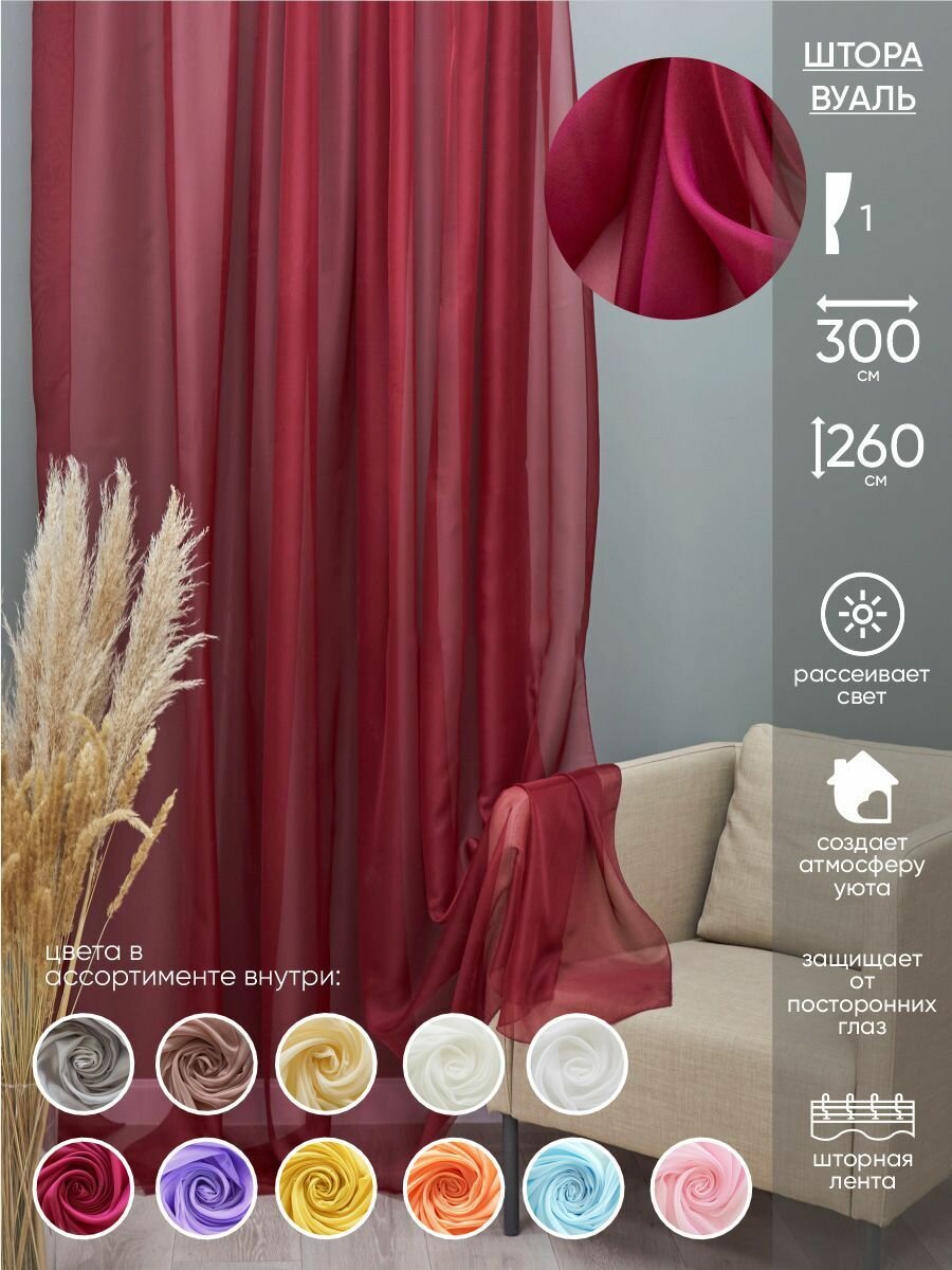 Штора вуаль Witerra 300*260 см бордовый информация: