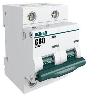 Автоматический выключатель DEKraft ВА-201 2P 80А (D) 10кА, 13017DEK информация: