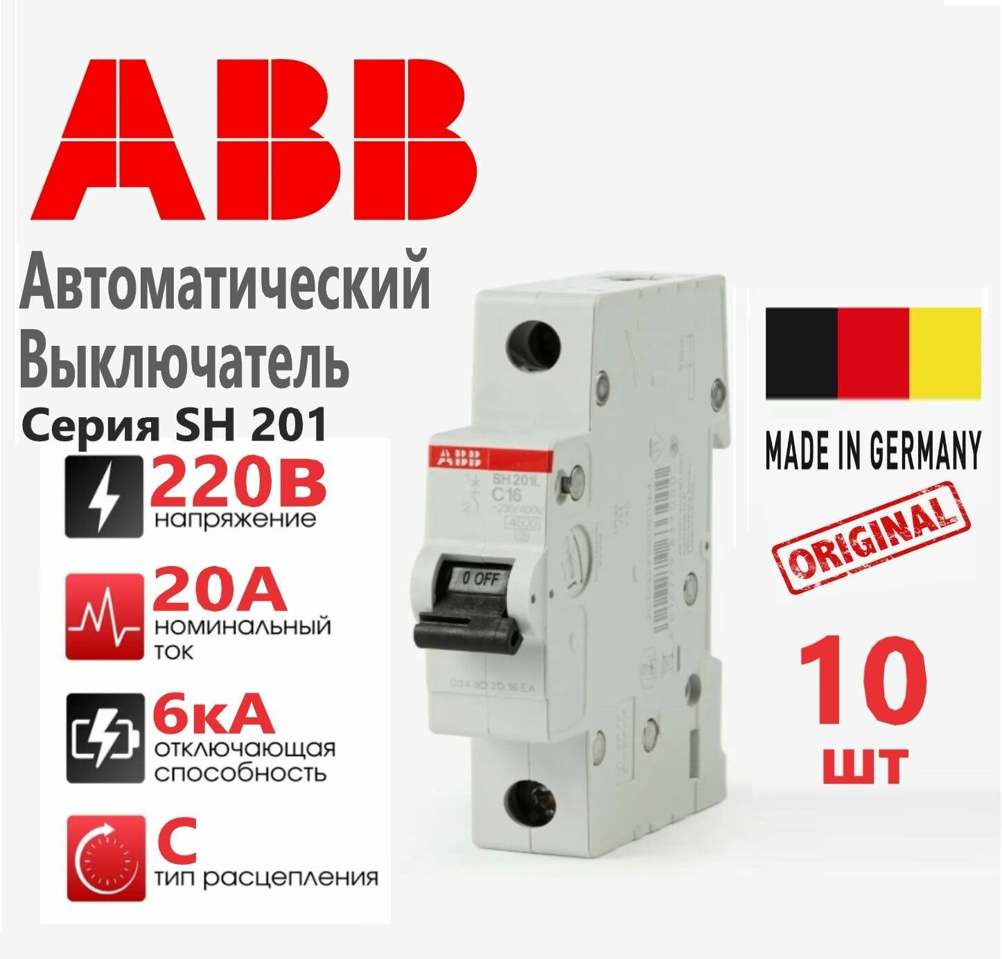 Автоматический выключатель ABB SH201 20A 6kA 1P тип С 2CDS211001R0204-10шт. информация: