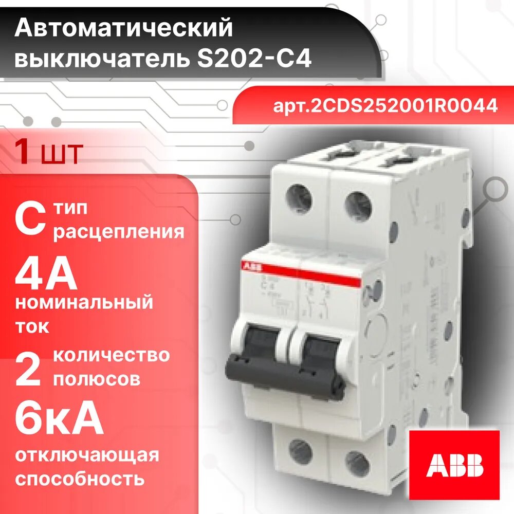 Автоматический выключатель 2P (2П) 4А тип C 6кА S202 ABB 2CDS252001R0044 1шт