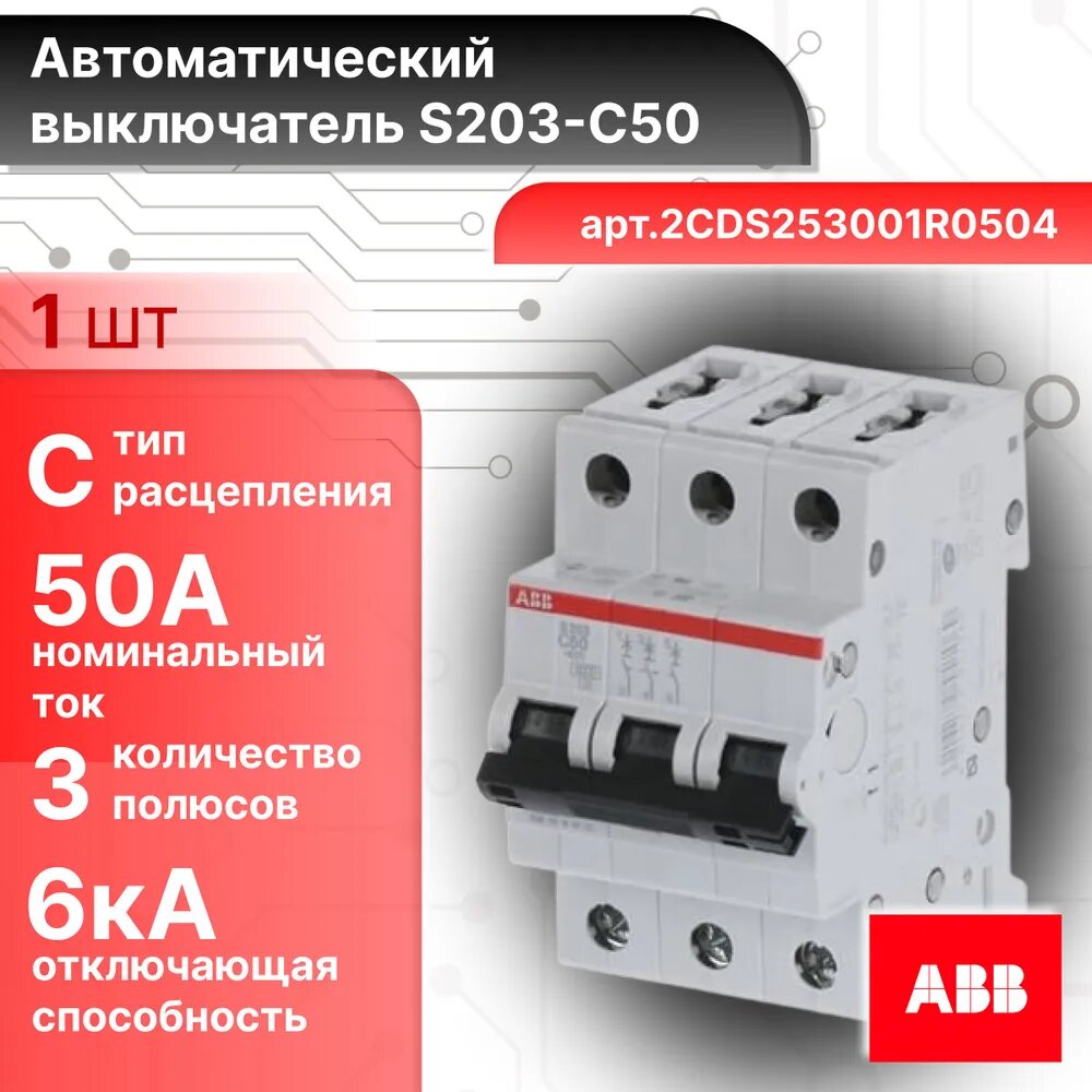 Автоматический выключатель ABB S203 3P C 50А 6кА 2CDS253001R0504 информация: