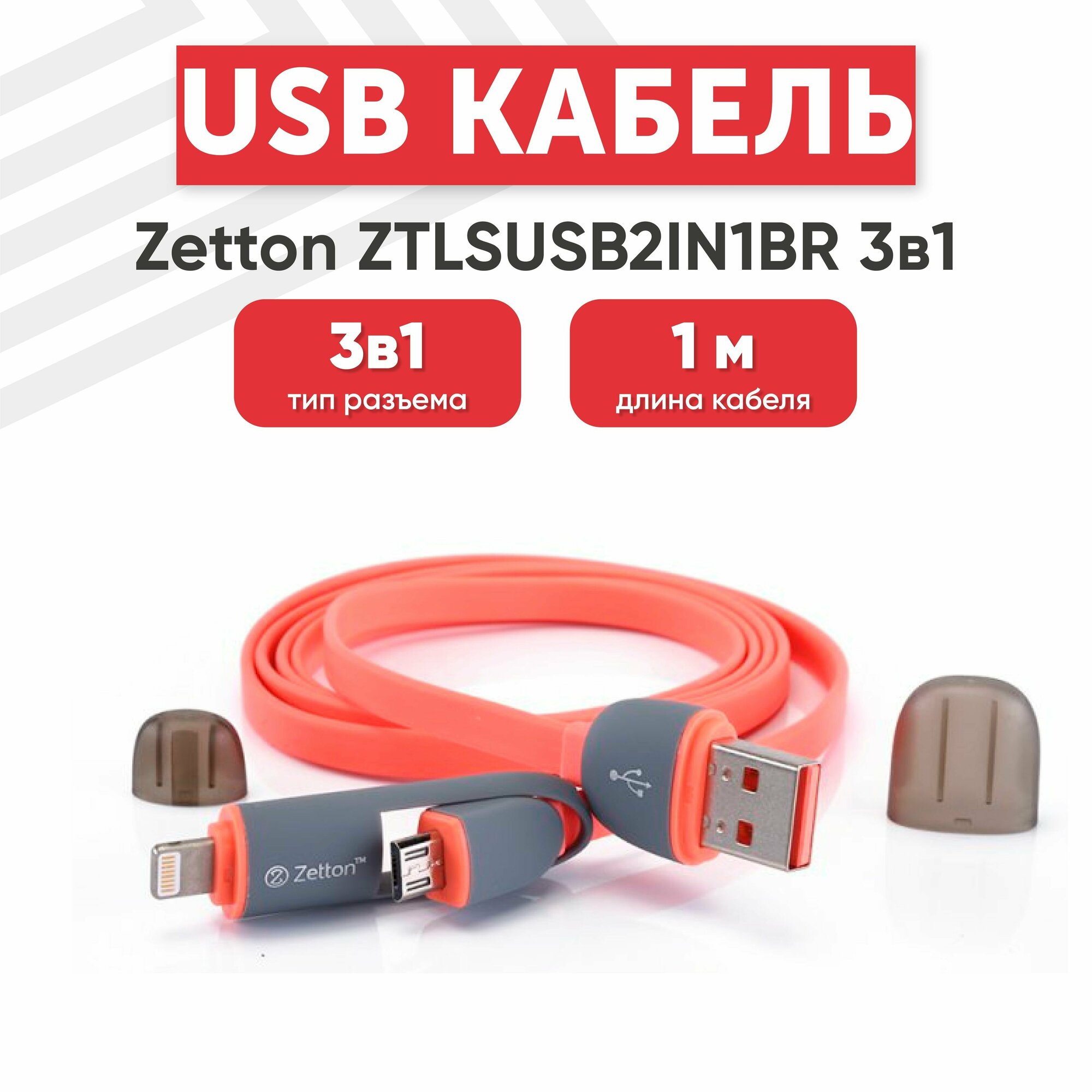 10 цен на USB кабель передачи данных Zetton 2 в 1 разъем Apple 8 pin/Micro USB красный (ZTLSUSB2IN1BR)