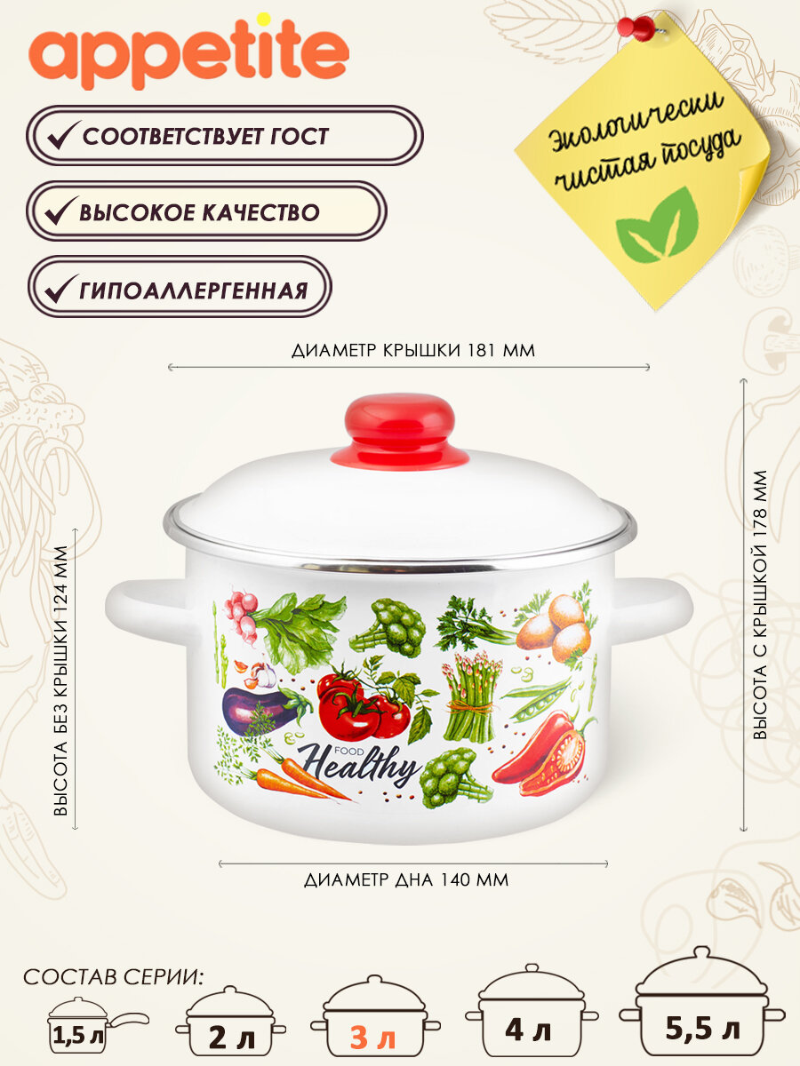 10 цен на Кастрюля 3,0л цилиндрическая Veggies ТМ Appetite, 1RD181М