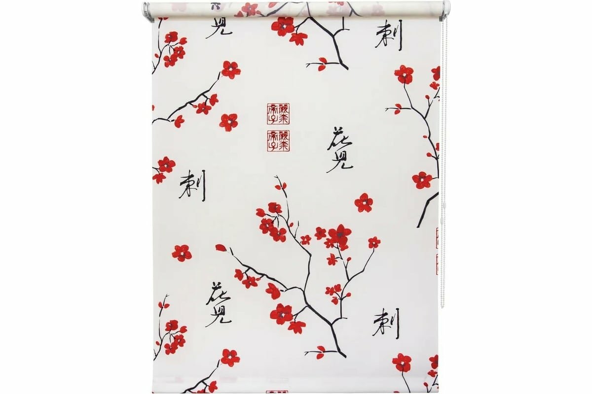 Рулонные шторы с рисунком цветов 50 x 175 см Жалюзи на окна с фотопечатью принта Сакура белый 1 907 ₽