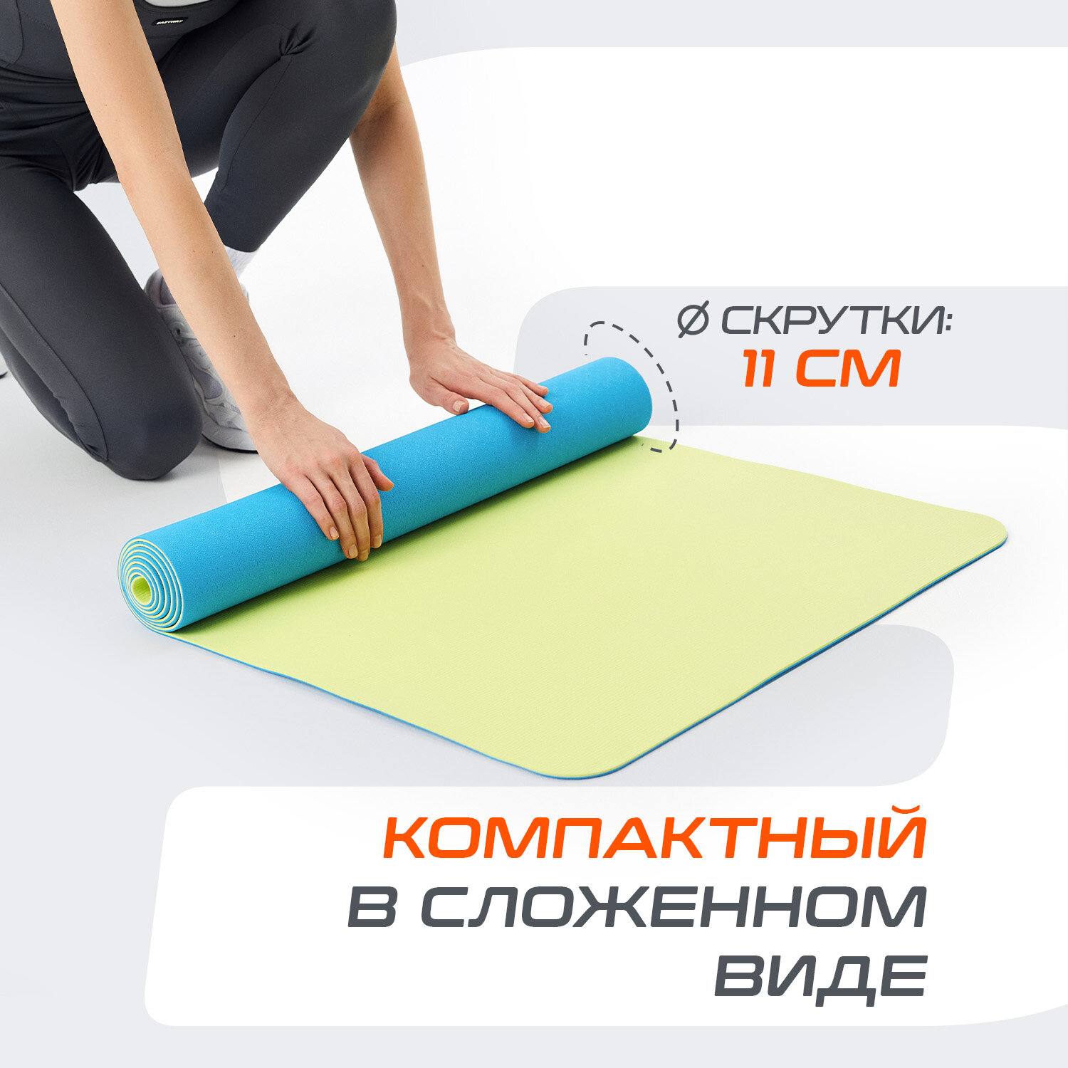 10 цен на Коврик для йоги и фитнеса FM-201, TPE, 183x61x0,4 см, синий/лайм
