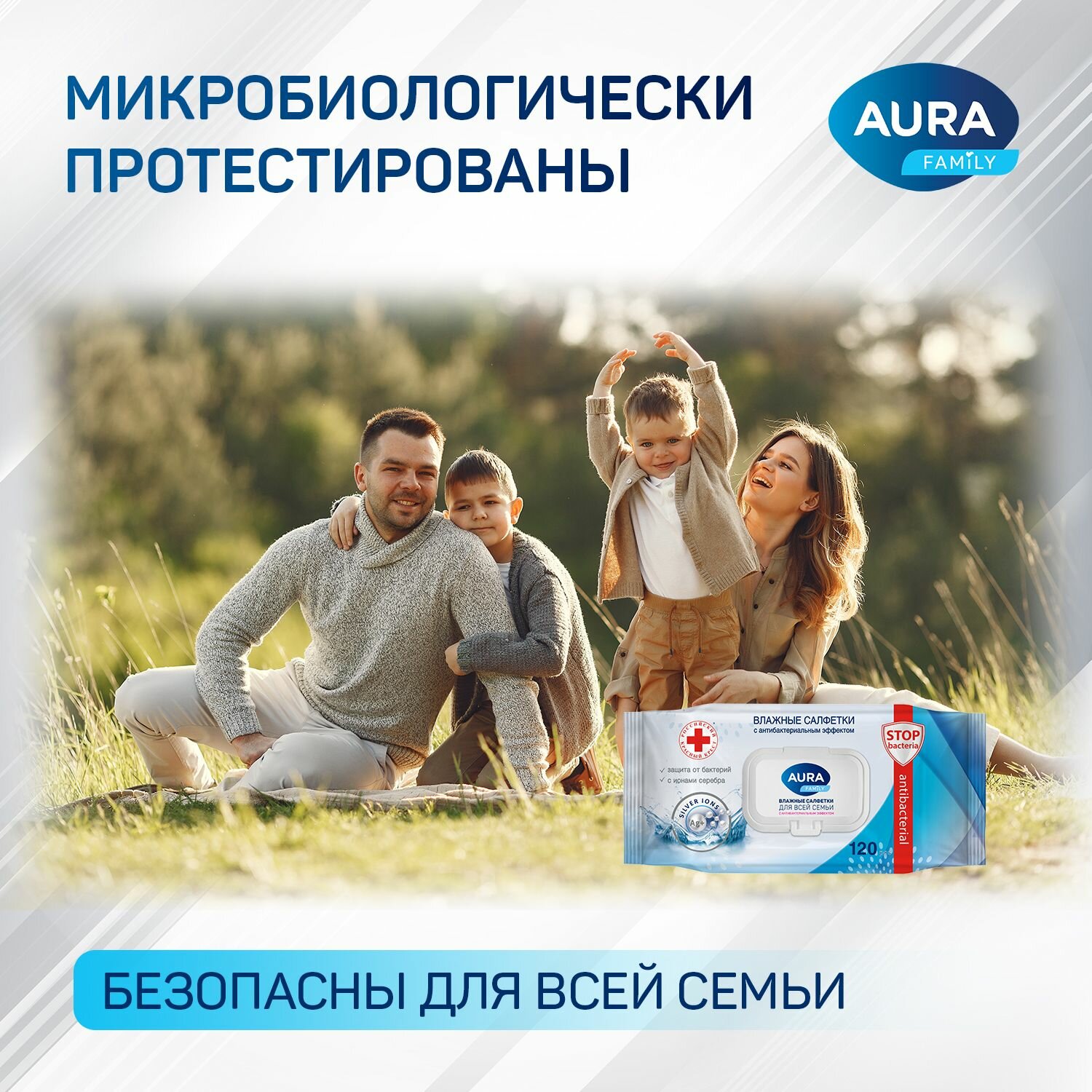 Влажные салфетки для всей семьи антибактериальные с крышкой, 720 шт (120 шт х 6), AURA FAMILY, Детские 699 ₽