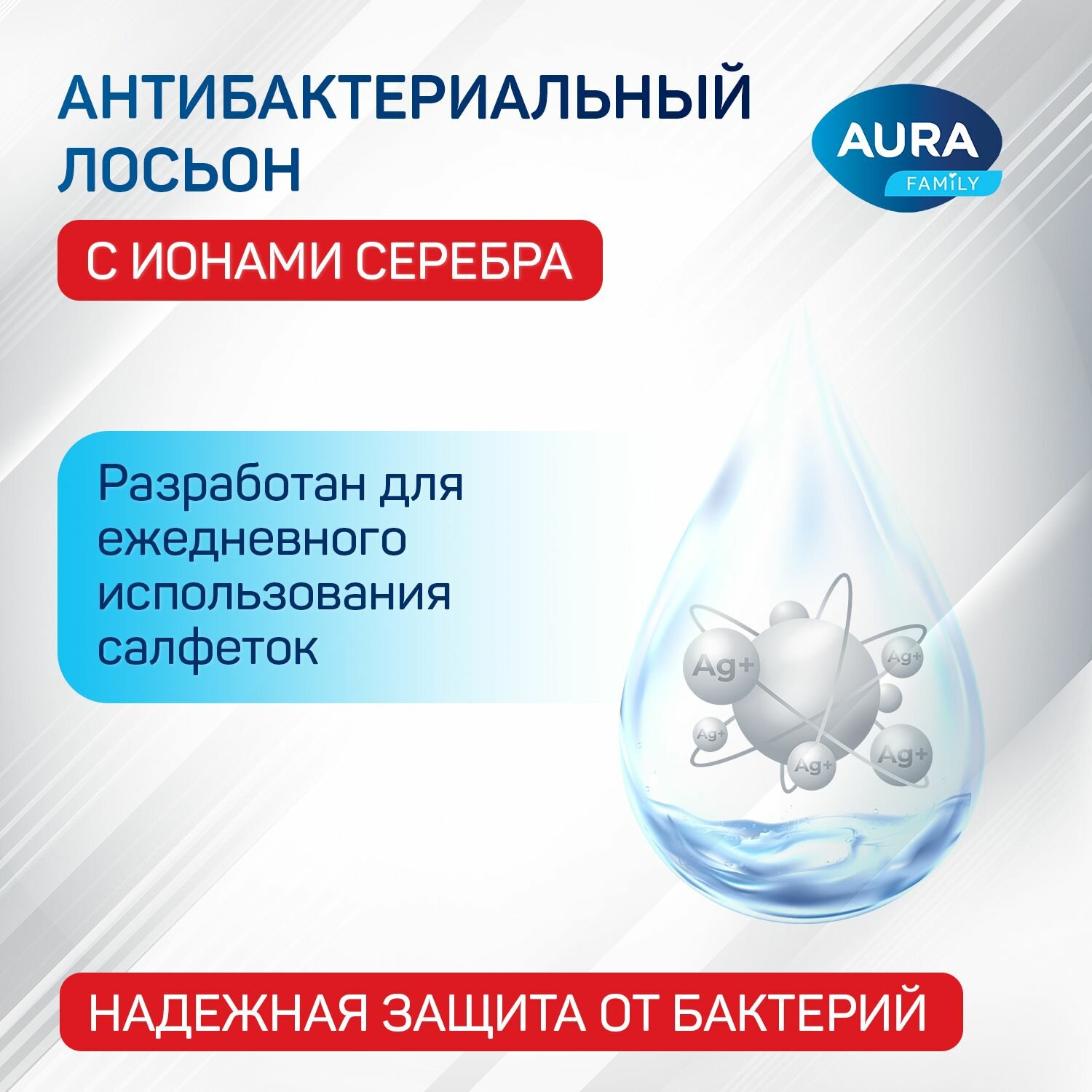 Влажные салфетки для всей семьи антибактериальные с крышкой 360 шт (120 шт х 3), AURA FAMILY, детские информация: