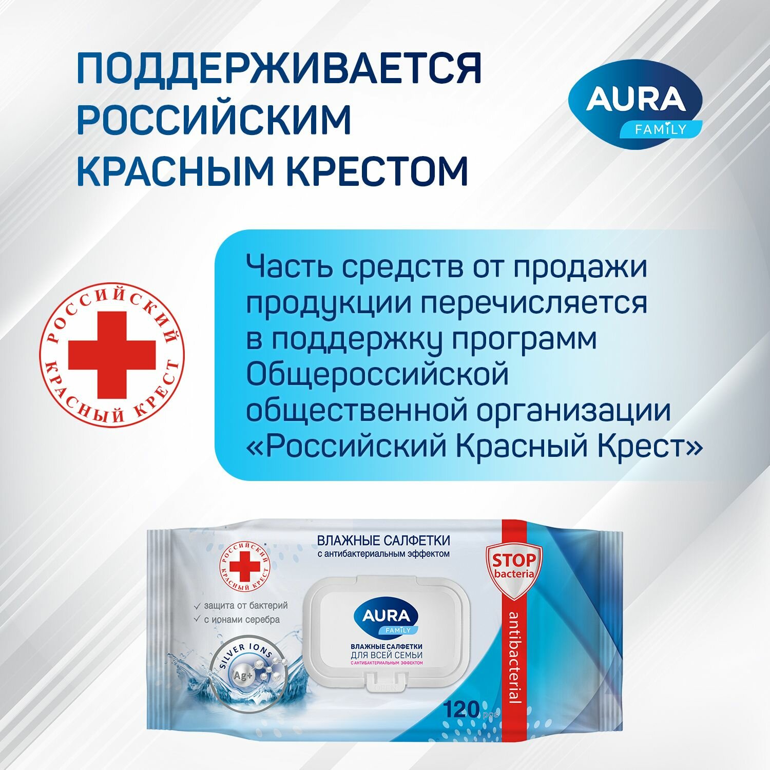 Влажные салфетки для всей семьи антибактериальные с крышкой 1440 шт (120 шт х 12), AURA FAMILY, детские информация: