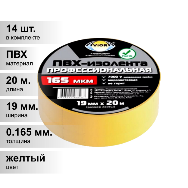 (14 шт.) Изолента ПВХ желтая 19мм 20м Aviora профессиональная информация: