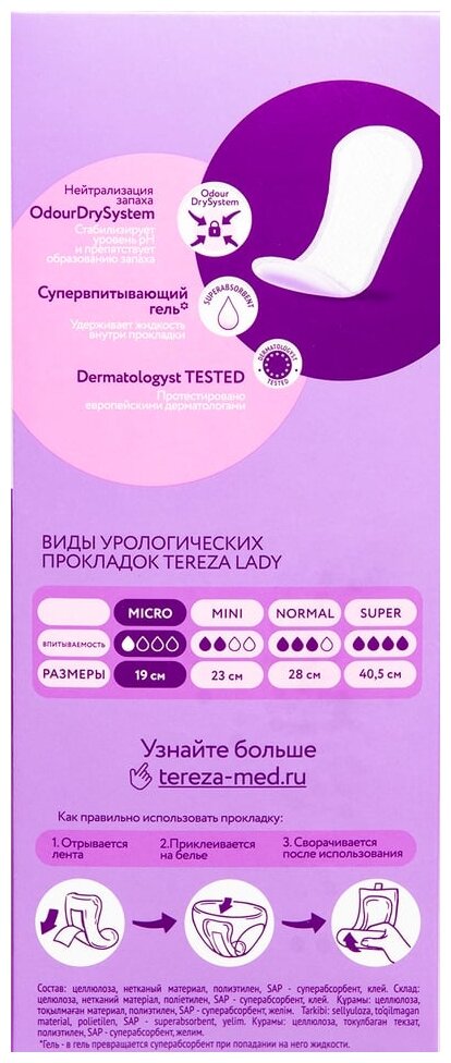гиг.ср._terezamed_прокладки урол.однор.исп. д/жен Lady Micro уп.24 (5687) 396000 информация: