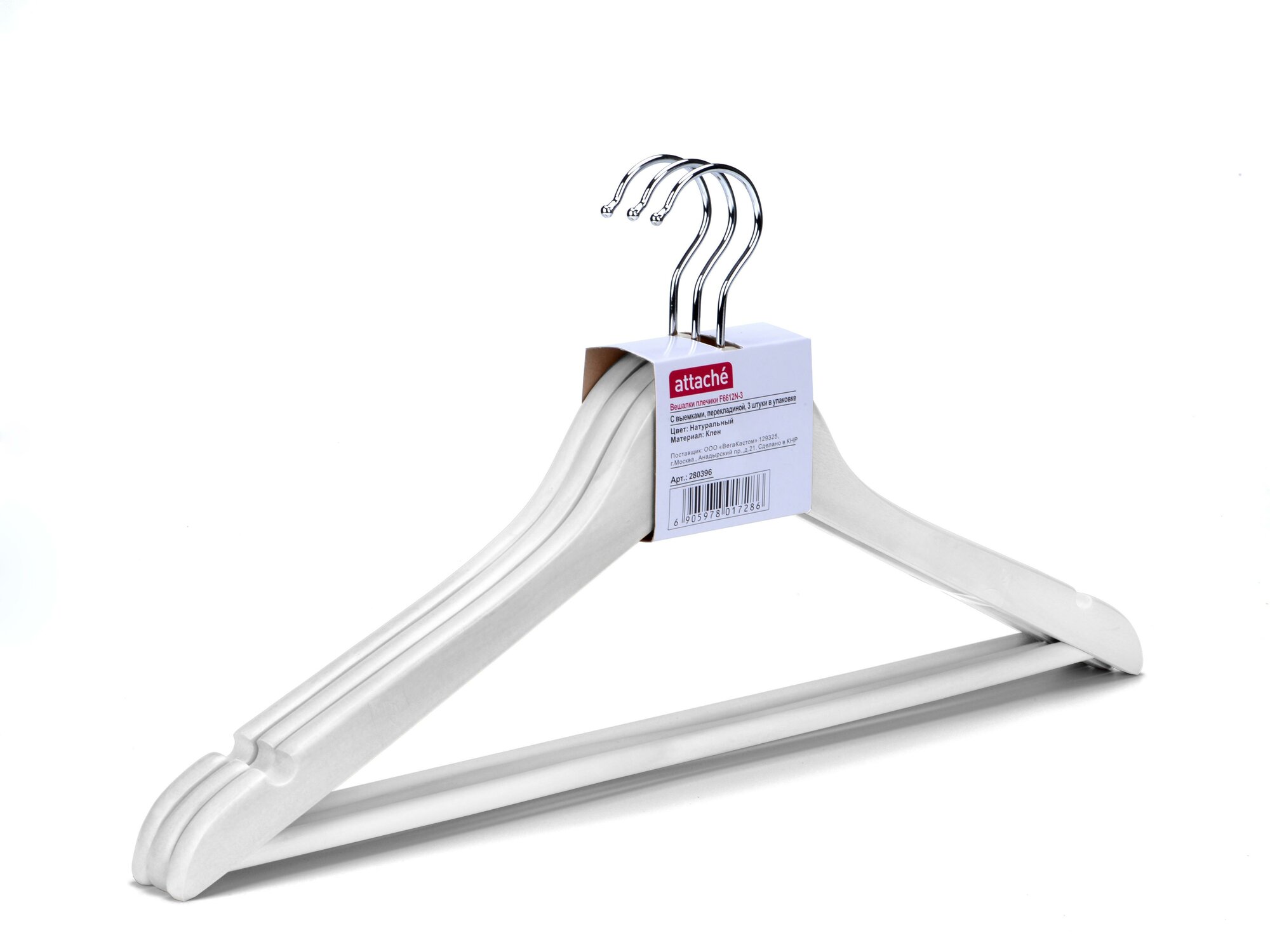 Вешалка-плечики деревянная Attache с выемками и перекладиной белая (размер 48-50, 3 штуки в упаковке), 808704 706 ₽