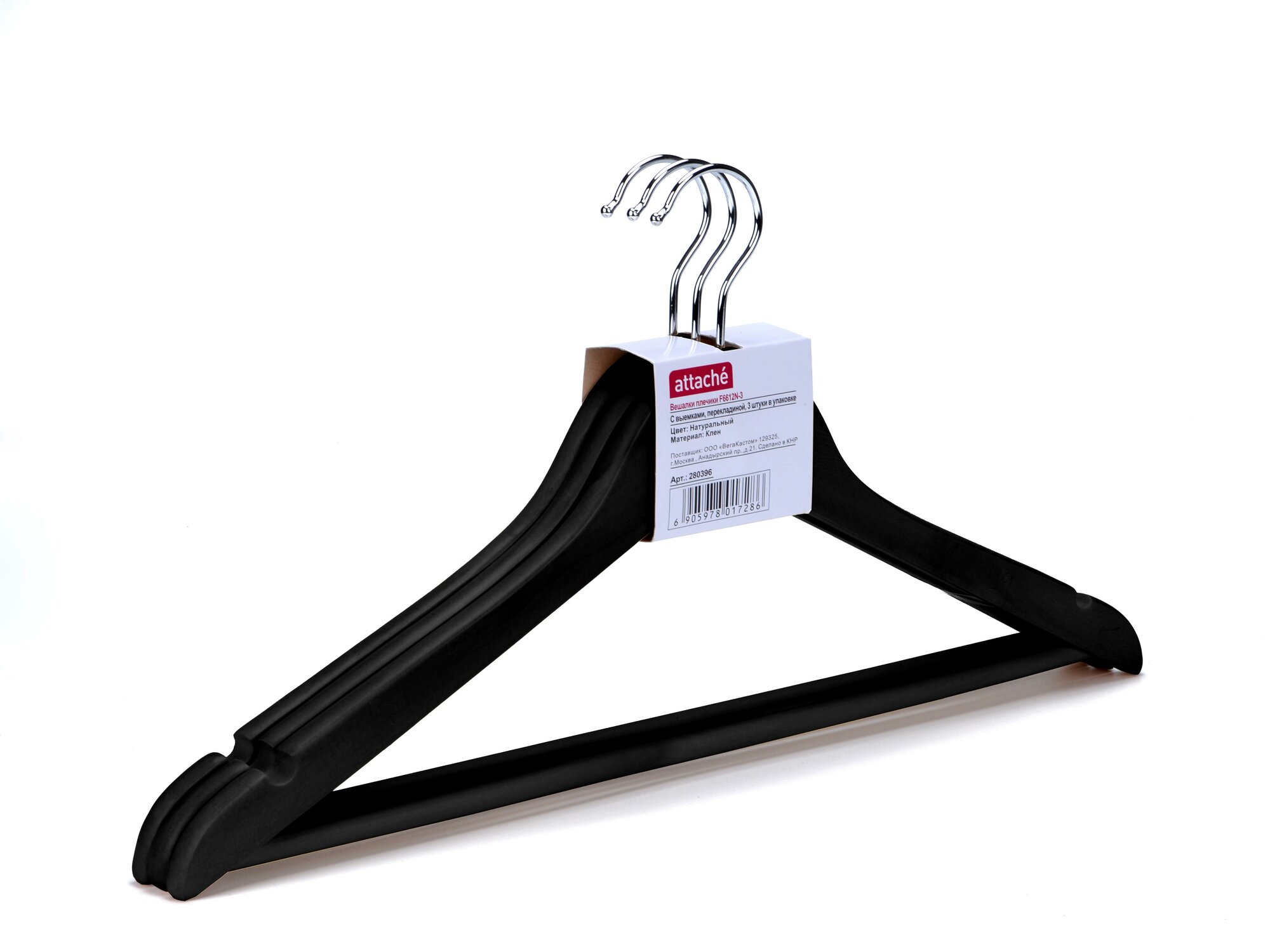 Вешалка-плечики деревянная Attache с выемками и перекладиной черная (размер 48-50, 3 штуки в упаковке), 808705 703 ₽