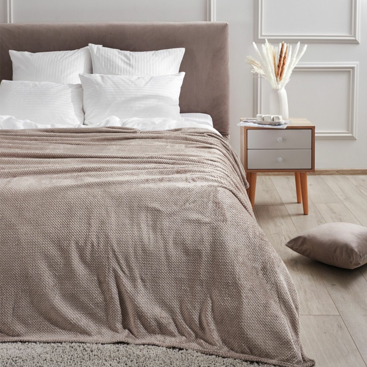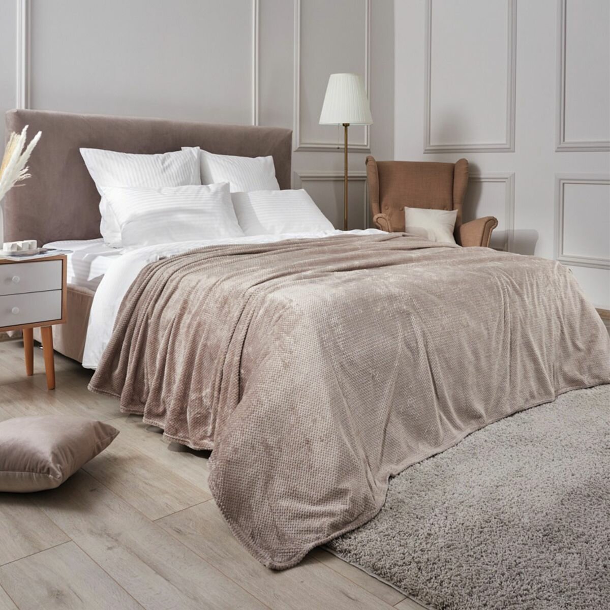 10 цен на Покрывало (плед), Guten Morgen, Велсофт, Жаккардовый, Моккачино, 200x220 см