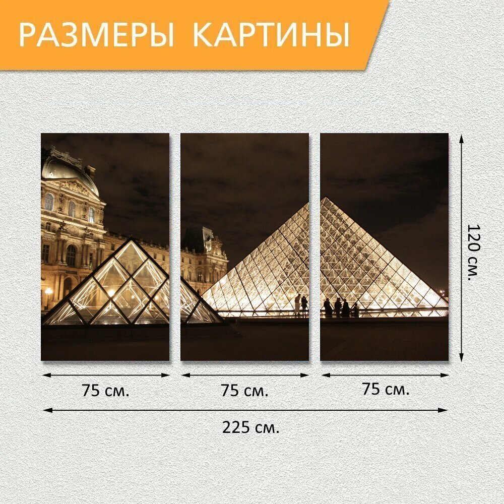 Модульная картина на холсте "Париж, франция, лувр" триптих на подрамнике 225х120 см. для интерьера информация: