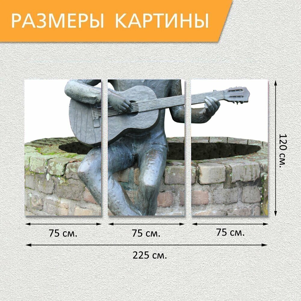10 цен на Модульная картина на холсте "Гитарист, гитара, инструмент" триптих на подрамнике 225х120 см. для интерьера