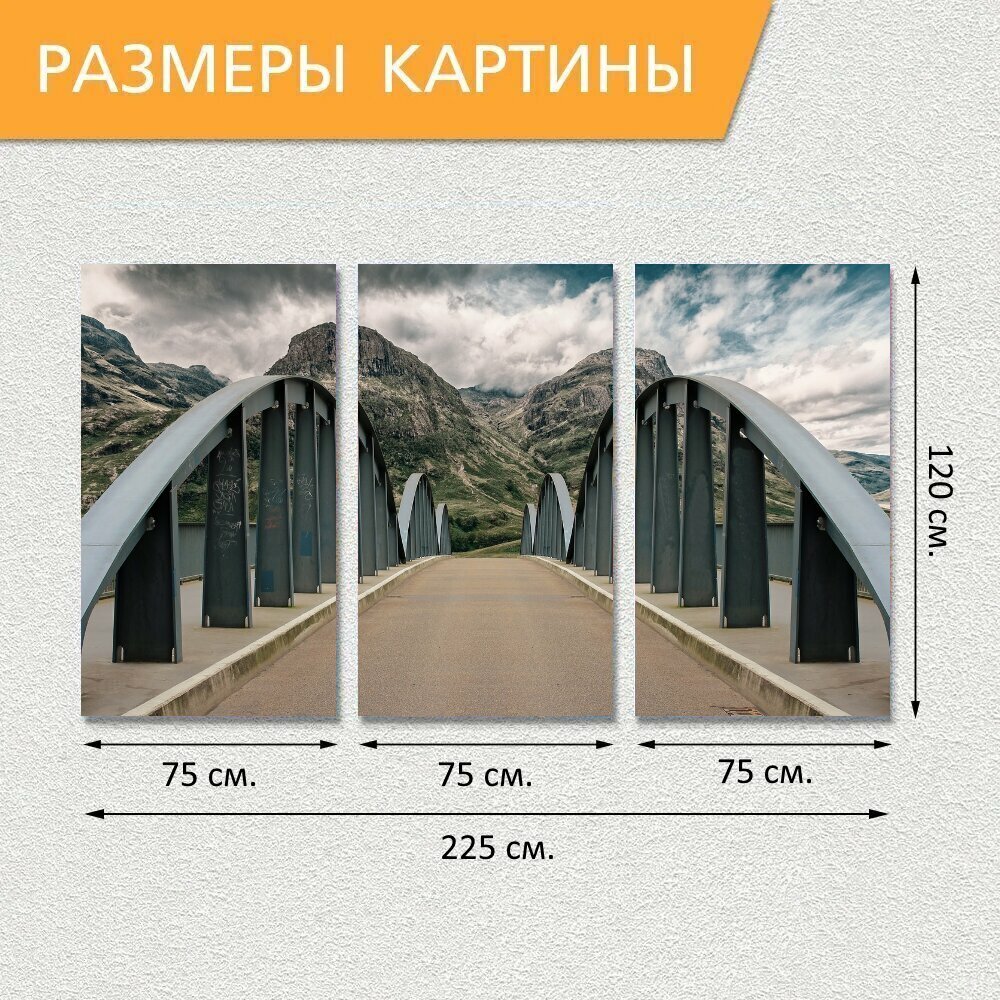10 цен на Модульная картина на холсте "Мост, украл, металлический каркас" триптих на подрамнике 225х120 см. для интерьера