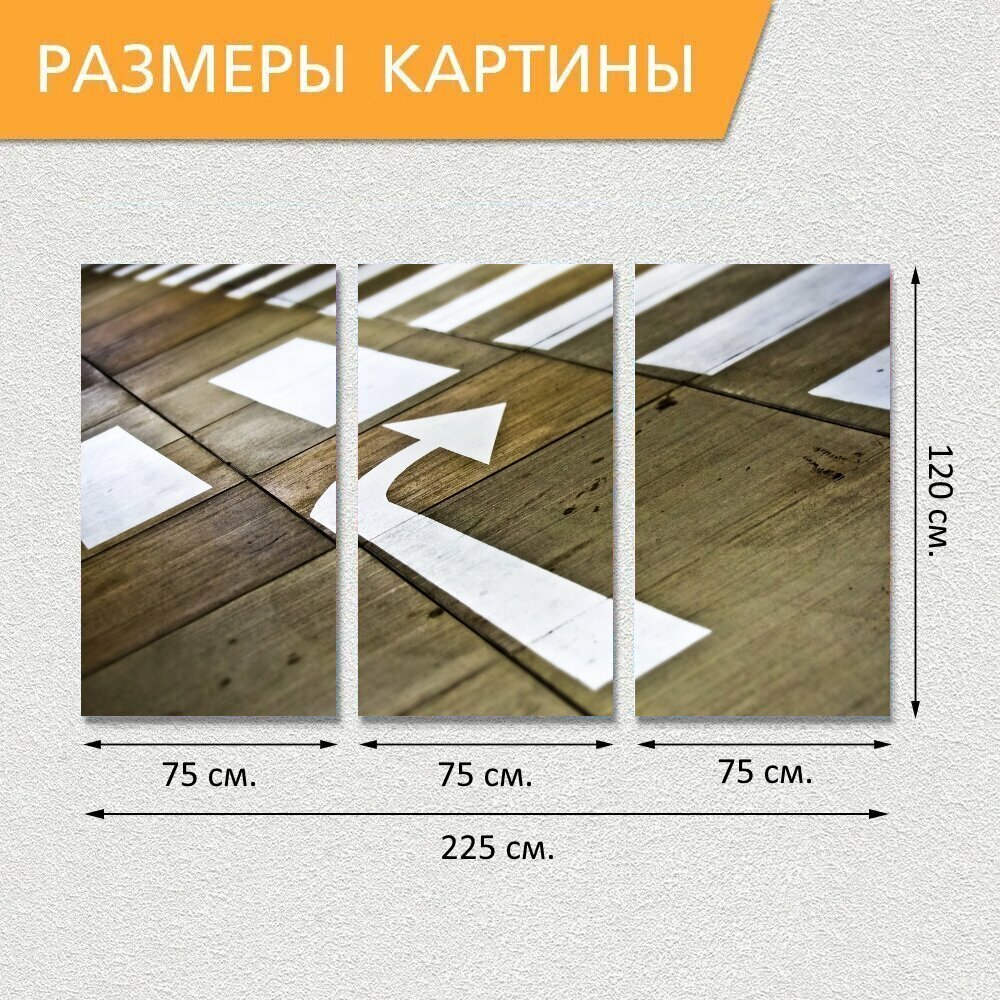 Модульная картина на холсте "Дорожная разметка, дорога, отметка" триптих на подрамнике 225х120 см. для интерьера информация:
