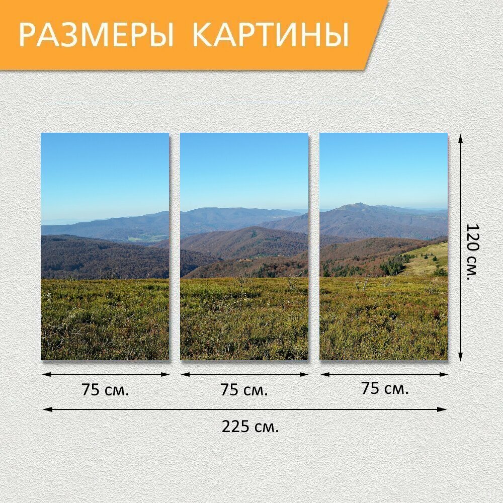 10 цен на Модульная картина на холсте "Горы, пейзаж, природа" триптих на подрамнике 225х120 см. для интерьера