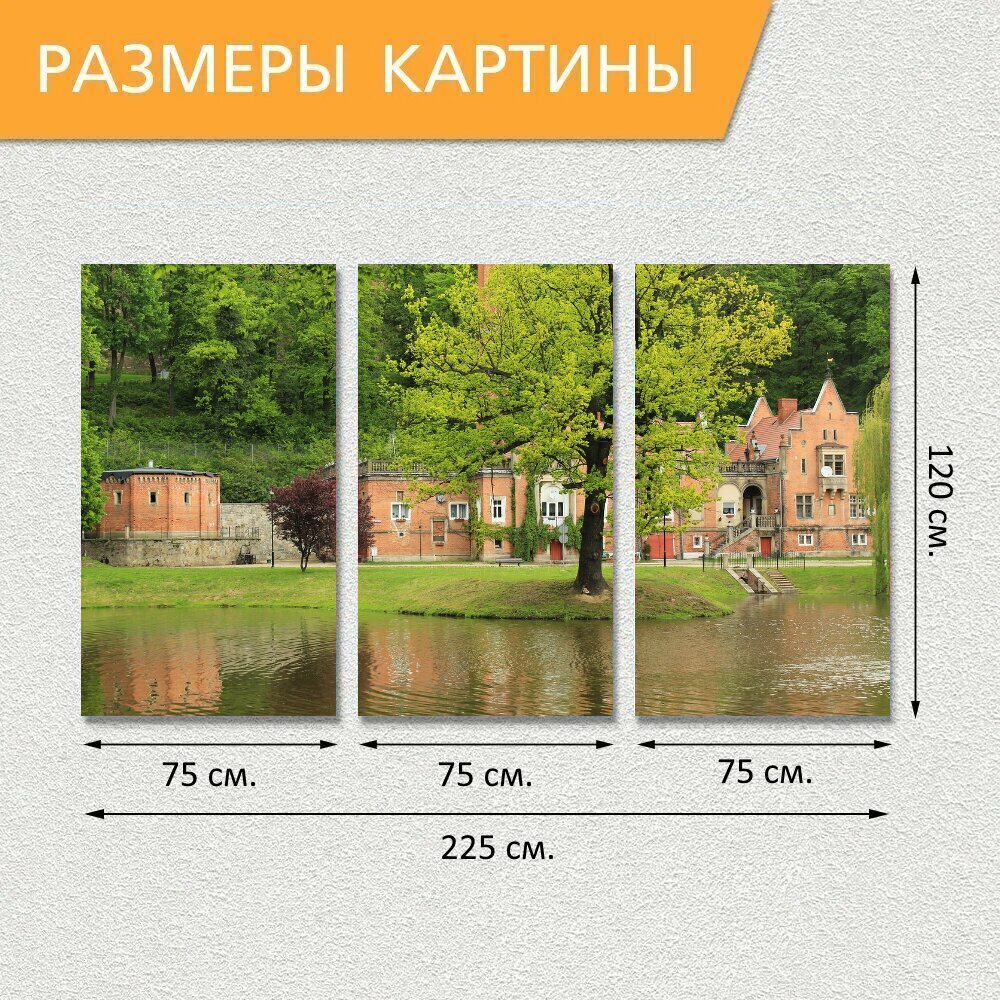10 цен на Модульная картина на холсте "Соединение, парк, вода" триптих на подрамнике 225х120 см. для интерьера