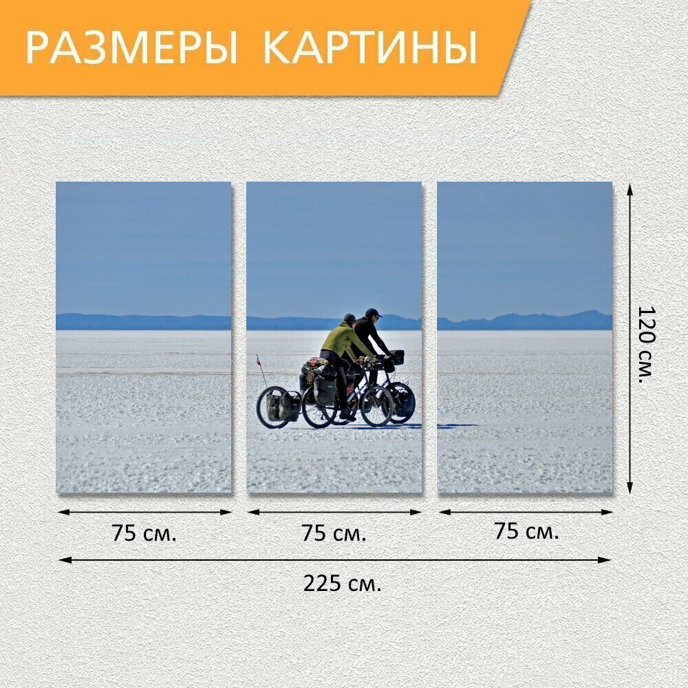 10 цен на Модульная картина на холсте "Салар уюни, туризм, женщины" триптих на подрамнике 225х120 см. для интерьера