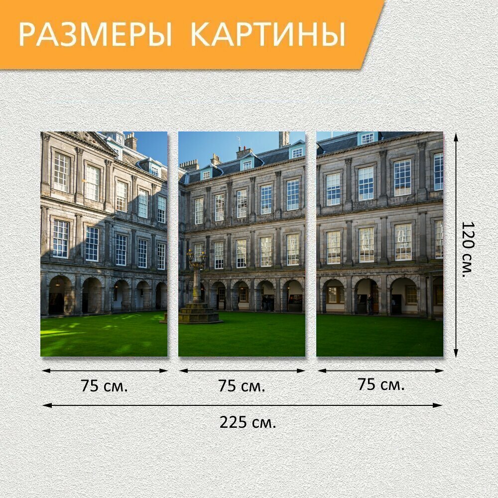 10 цен на Модульная картина на холсте "Холирудский дворец, эдинбург, эдинбургский дворец" триптих на подрамнике 225х120 см. для интерьера