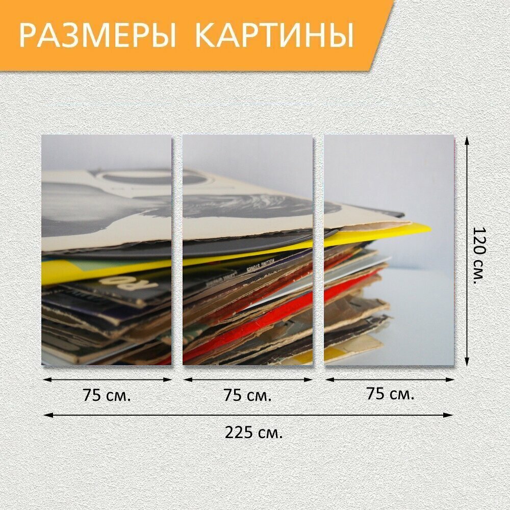 Модульная картина на холсте "Записи, винилы, альбомы" триптих на подрамнике 225х120 см. для интерьера информация: