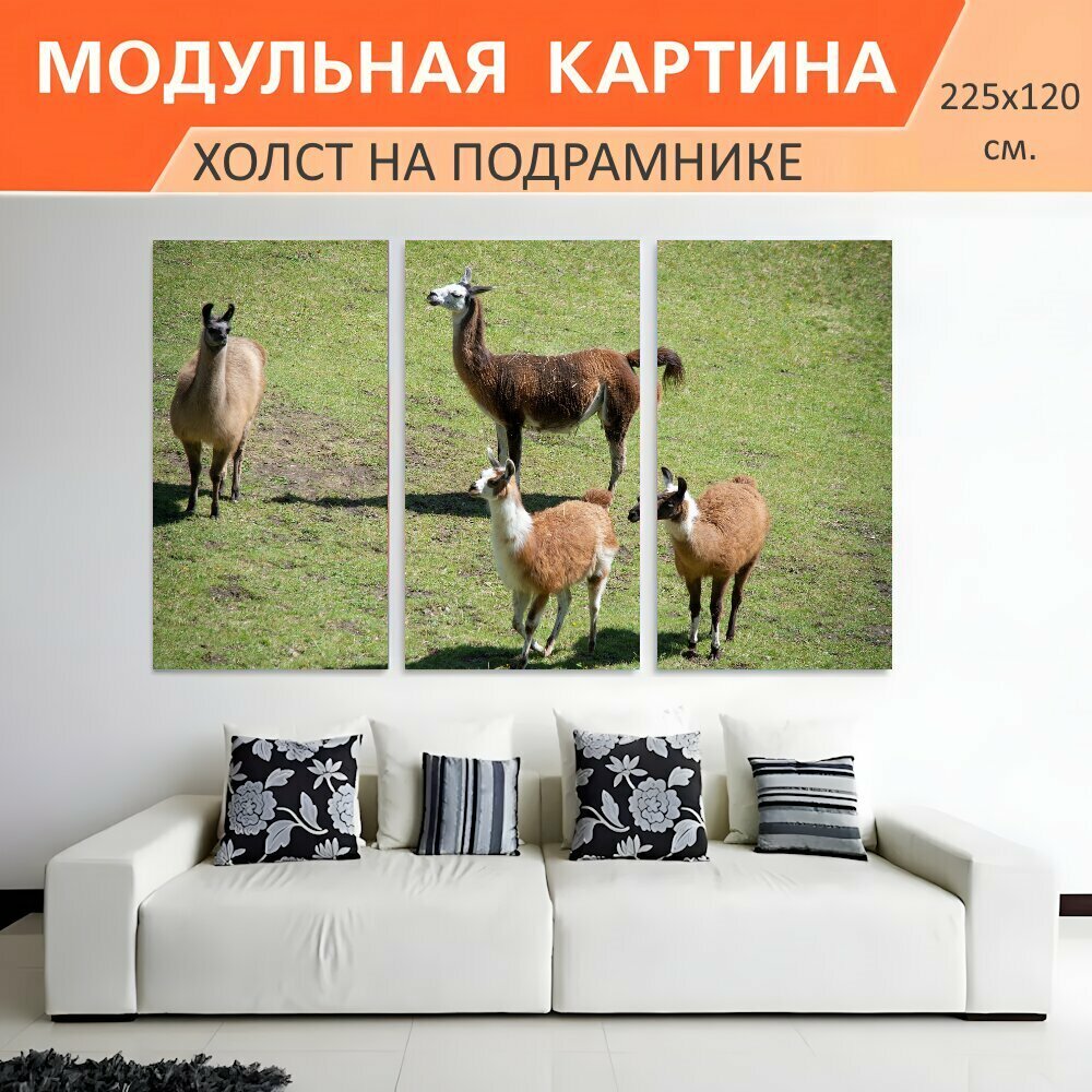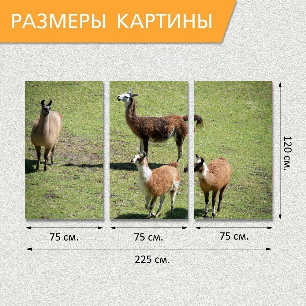 Модульная картина на холсте "Лам, луг, пастбище" триптих на подрамнике 225х120 см. для интерьера информация: