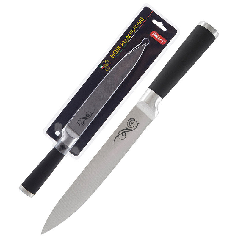 Нож разделочный (лезвие 20см) ручка прорезин. кованый с рис. MAL-02RS Mallony BL 985362