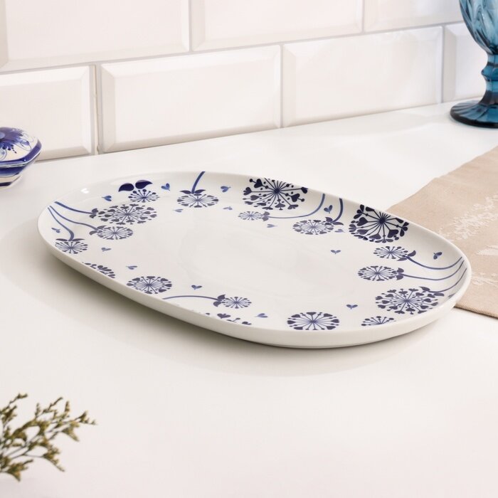 10 цен на Блюдо овальное "Блюз одуванчик", 205х315х20мм, нео гжель