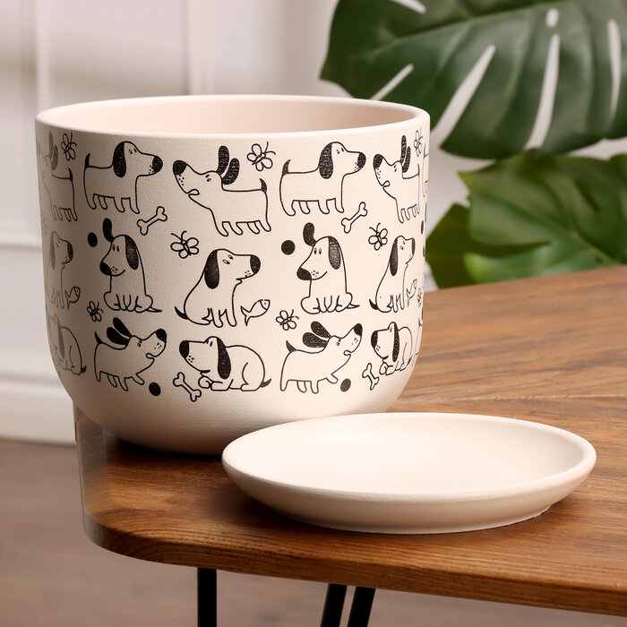 Горшок цветочный Собаки белый бук №3, 2,9 л, d - 19 см информация: