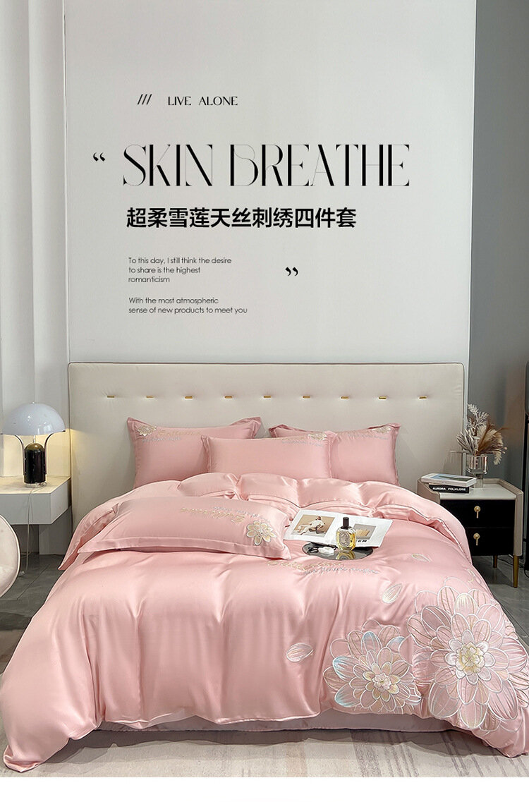 Постельное белье "Супер мягкий снежный лотос", тенсел, 1,5 спальный, комплект из 4 предметов информация: