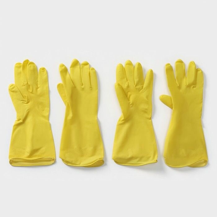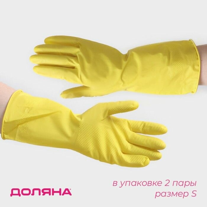 Перчатки хозяйственные латексные Доляна, 2 пары, размер S, 28 г, ХБ напыление, цвет жёлтый информация: